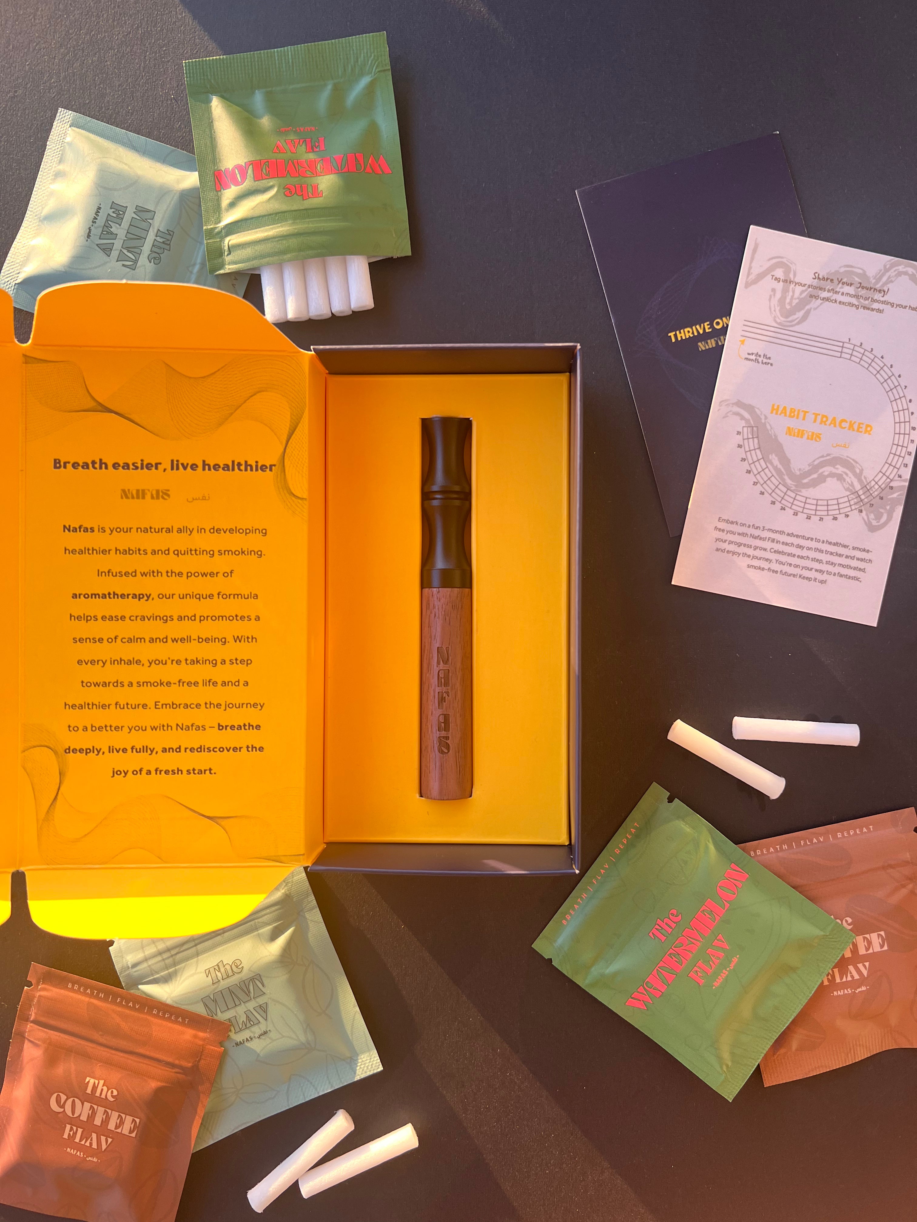 Nafas™ works by utilizing natural ingredients infused into replaceable cores. As you breathe in, the air passes through the core, carrying with it the therapeutic aromas, allowing you to enjoy the benefits of aromatherapy anytime, anywhere.